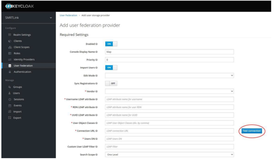 admin/admin(unless you have changed the password). - Under Configure on the left-hand side of the window, click User Federation