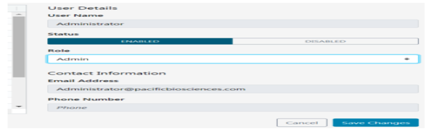 - Assign at least one user per site to the Admin role. That individual is responsible for enabling and disabling SMRT Link users, as well as specifying their roles and adding/removing associated Revio instruments. The Admin can also access all SMRT Link modules, as well as every file in the system. (Note: SMRT Link supports multiple users with the Admin role per site.)