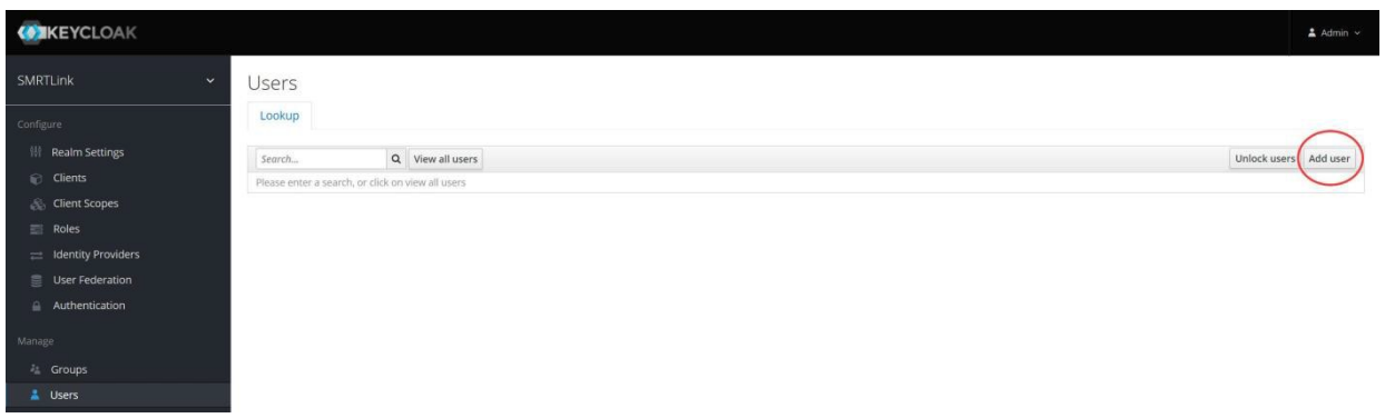 https://<servername>:9443/adminand log in with the SMRT Link built-inadminaccount credentials (admin/adminby default.) - On the left-hand menu, under Manage, click Users.